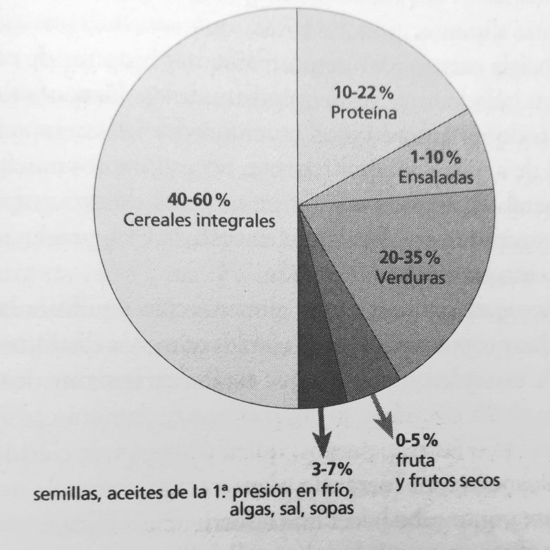 -Solo en caso de personas con buena potencia digestiva, se recomienda en cada comida una pequeña ensalada de verduras crudas con un poquito de perejil y otras hojas verdes. También se puede añadir un poco de chucrut casero. Con esta ensalada nos aseguramos la ingesta diaria de vitamina C y la correcta asimilación del hierro. Si los intestinos están débiles y fríos, es mejor añadir a la comida solamente un picadillo de perejil, alguna aceituna, un poquito de chucrut, miso, tamari o salsa de soja.